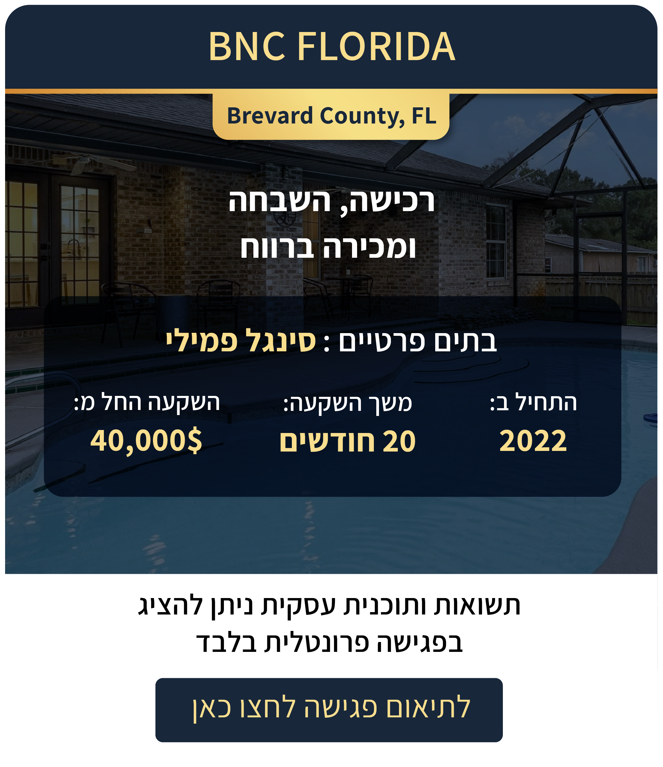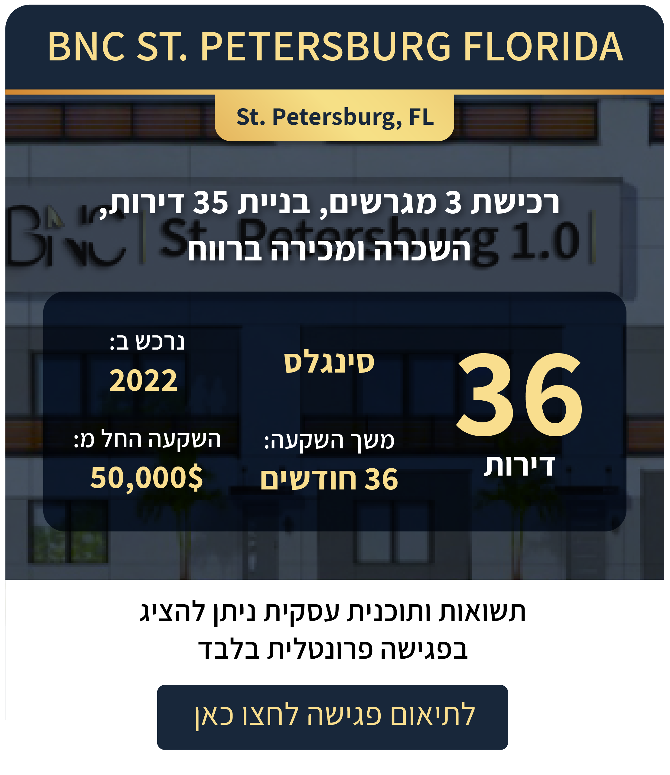 בפגישה נציג בפניכם השקעות רלוונטיות ונבנה לכם תוכנית השקעות מותאמת אישית המבוססת על הצרכים, היכולות והרצונות שלכם.